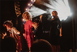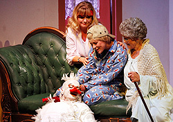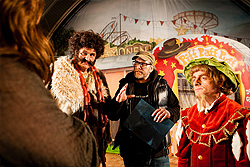 … spuken unterm Riesenrad. Das taten sie schon 1979 - da feierte das skurrile Trio große Erfolge im Fernsehen. Die TV-Serie "Spuk unterm Riesenrad" haben wir für die Bühne adaptiert und produziert. Am 20. Juli feierten wir auf dem ausverkauften Konzertplatz Weißer Hirsch Premiere. Publikum und Presse zeigten sich gleichermaßen begeistert. Die Dresdner Neuesten Nachrichten schrieben bspw.: "Minutenlanger, lebhafter Applaus – das Publikum lacht Tränen! Mitreißende Gesangsparts, großartige Schauspieler und ein liebevoll inszeniertes Bühnenbild. Musikalisch wie optisch furios, mit einer ordentlichen Portion Wortwitz. Der Spielort mitten im Wald bietet eine perfekte Kulisse!" Wir danken unserem großartigen Ensemble Volker Zack, Jürgen Mai, Ulrike Mai, Mandy Partzsch, Lena Heimannsberg, Günter Junghans, Philipp Richter und Klaus Gehrke, sowie dem Komponisten Andreas Goldmann, unserer Bühnen- und Kostümbildnerin Anna Beck, der Maskenbildnerin Christine Palme und allen Beteiligten für eine Sommerarbeit, die nicht nur uns, sondern vor allem unserem Publikum große Freude bereitet hat. Ab 2012 steht die Produktion für Gastspiele zur Verfügung.