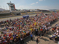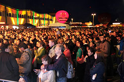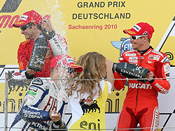 Beim MotoGP 2010 mit 224.668 Zuschauern auf dem Sachsenring waren wir – beladen mit vier Bands sowie unzähligen Ringordnern, Kisten und Koffern – ein ganzes Wochenende im Dauereinsatz. Tausende feierten, rockten und tanzten bereits ab Freitag in und dank einer Liveübertragung auch vor der Eventhalle auf dem Sachsenring. Die legendäre Fahrerpräsentation war am Samstag das Highlight auf unserer Bühne und die VIPs fühlten sich am Sonntag nicht nur während des offiziellen Rennens gut betreut.