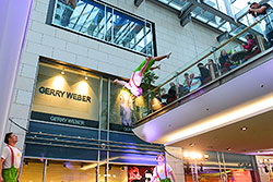 Da sich bald die Äste bunter Bäume im Herbstwind biegen, entwickelten wir für unseren Kunden die Aktion „MIT SCHWUNG IN DEN HERBST“. Unter den hohen Vordächern der Altmarkt-Galerie Dresden präsentierten Models auf 10 Schaukeln die aktuelle Mode der kommenden Herbst-Winter-Saison und gleichzeitig ausgewählte Sonderaktionen der einzelnen Stores.