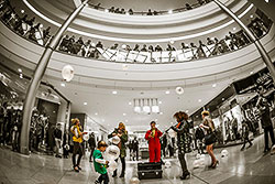 Im Rahmen des ersten Dresdner Fashion Design Festivals inszenierten wir für die Altmarkt-Galerie Dresden eigens kreierte „pop up shows“. An zwei Tagen tauchten im gesamten Center insgesamt 50 kurze Fashionshows direkt zwischen den Besuchern auf – Models, Tänzer, Musiker und Artisten gestalteten dabei unterschiedliche Szenen und Erlebnisse – und erzeugten mit kurzweiliger Präsenz anhaltende Nachfrage. Die Idee dazu entwickelten wir aus den so genannten und weltweit trendigen Pop-Up-Stores, die ein kurzfristiges und provisorisches Einzelhandelsgeschäft, welches vorübergehend in leerstehenden Geschäftsräumen betrieben wird, beschreiben.