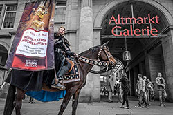 Zwei Wochen lang wurden in der Altmarkt-Galerie Dresden die aktuellen Waffen für "Das tägliche Duell mit dem Spiegel" präsentiert. Unter diesem Motto entwickelten wir im Auftrag der Werbegemeinschaft für diesen Premium-Standort der ECE Projektmanagement G.m.b.H. & Co. KG ein informatives Konzept für die laufende Frühjahrs-Sommer-Mode. Eine Ausstellung mit persönlichen Trendtipps der Star-Stylisten Mads Roennborg und Manuel Kirchner wurde mit einer unterhaltsamen Trendshow ergänzt. Die Gäste der über einhundert Fashionstores konnten die großen fünf Trendthemen des Jahres 2012 erleben und alle wichtigen do's & don'ts erfahren. Die Ergebnisse von vier exklusiven Personal Shoppings inkl. kompletten Makeover mit neuer Frisur und Makeup-Beratung im Gesamtwert von je 1.000 Euro zeigte final die Kompetenz dieses beliebten Innenstadtcenters.